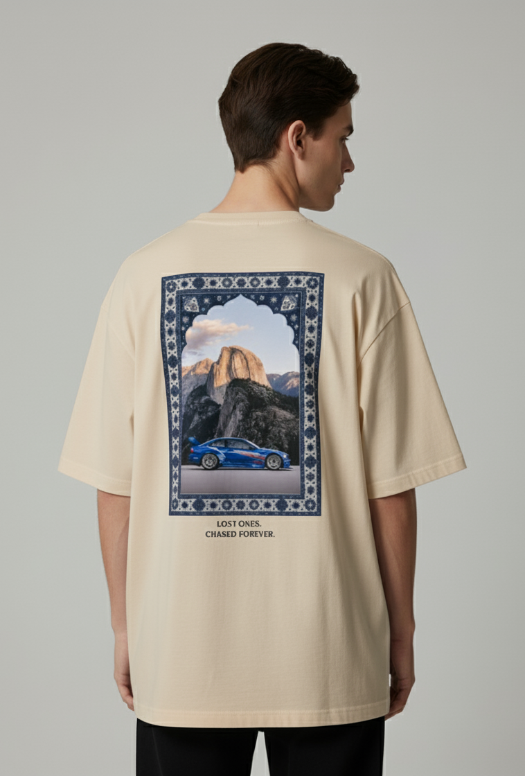 Oversize Beyaz Tişört – "Lost Ones. Chased Forever." Baskılı