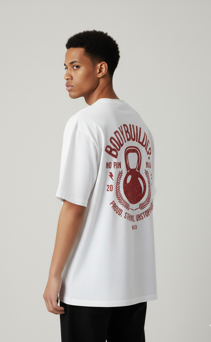 Unisex Oversize Bisiklet Yaka Tişört – Bodybuilder Tasarım