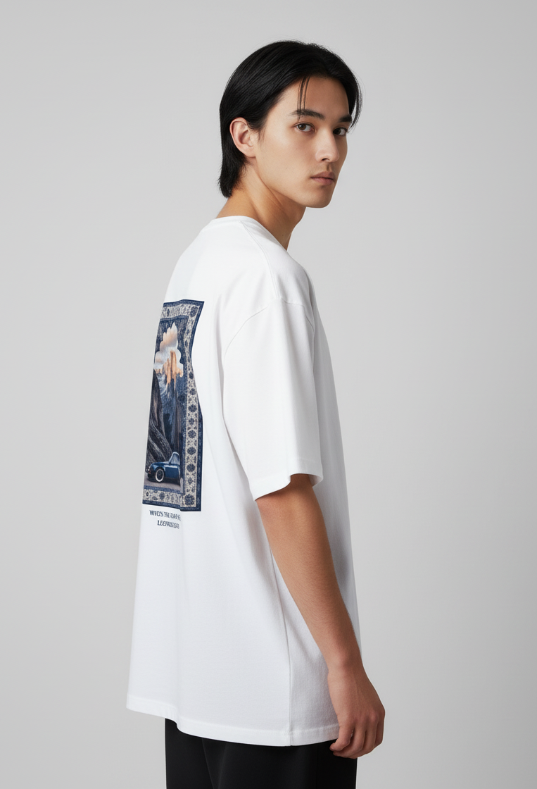 Oversize Beyaz Tişört – “Porsche 911 Carrera”